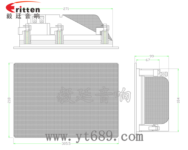 6.5寸方型外磁帶網罩全頻喇叭,采用的是精美的銅材質按壓式接線端子,配紅黑正負極,接線方便,音質細膩;