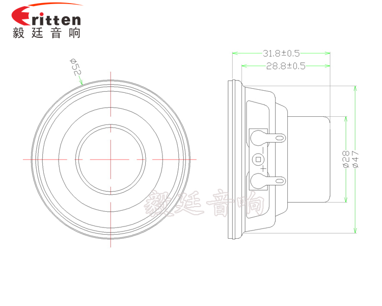 52mm圓形鐵盆架內磁全頻喇叭,采用的是高性能釹鐵硼三文治磁路高音單元,磁通密度高,音質自然清澈,通透明亮;